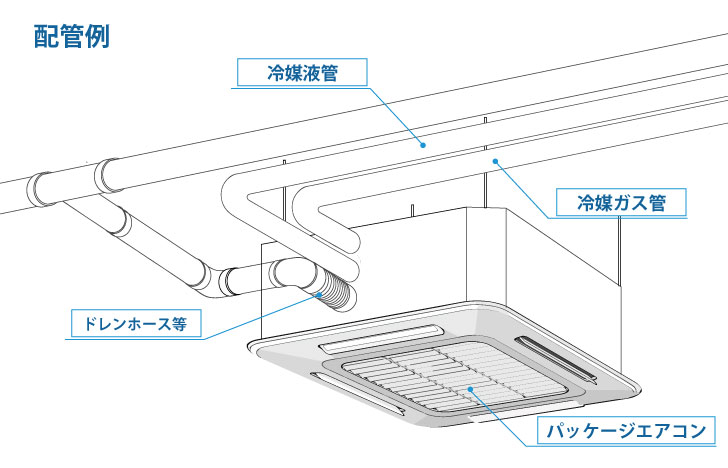 室外機が天井の上にありますが、屋根のある屋外に設置できるため倉庫などに適しています。